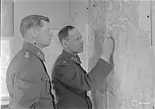 ![]() Mäkinen (right) inspecting a map in 1941 | |