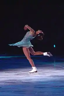 In 2001, she was the subject of a Lenox figurine called "Katia's Celebration of Life," which depicts her performing a layback spin in the tribute she skated for Grinkov.[25] She also appeared in the 2003 Sports Illustrated Swimsuit Issue as a featured athlete.[26] In 2003, she appeared on the ice for the first time with Daria. The pair performed a duet during a Mother's Day show and took the ice together several times since 2003, including two different versions of Amy Grant's "Children of the World" at Kristi Yamaguchi's "Family & Friends" shows in 2005 and 2006. During that show in 2007, the mother-daughter duo became a trio when they were joined by Gordeeva's younger daughter, Liza, and all three skated together to "Homesick" performed live by The Cheetah Girls.[27] Since 2007, all three are amateur skaters together.