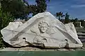 In the early second century CE, Emperor Hadrian, who visited the cities of the East around 130 CE, conferred the title of Metropolis on Tyre: "great city" mother of other cities.[14] Subsequently, a triple-bay Triumphal Arch, an aqueduct from the springs of Ras al-Ain some six kilometers to the South and the Tyre Hippodrome were constructed. The arch was 21 meters high and became the gateway of the Roman town. At its side pillars were erected that were more than four meters high and carried the water canal alongside the road into the town on the peninsula.[15] The hippodrome is the largest (480m long and 160m wide) and best-preserved Roman hippodrome after the one in Rome.[16] The amphitheater for the horse-racetrack could host some 30.000 spectators. During the third century CE, the Heraclia games – dedicated to the deity Melqart-Heracles (not to be confused with the demigod Heracles, hero of the 12 labors) – were held in the hippodrome every four years.[14]