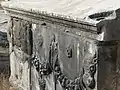 Meanwhile, between the first and fourth centuries CE, one of the largest known cemeteries of the region grew in El Buss with more than forty tomb complexes, at least 825 graves and the physical remains of almost 4,000 individuals.[15] The marble sarcophagi, which were imported from Greece and Asia Minor, and the other tombs of the monumental necropolis spread on both sides of the road leading to the triumphal arch over a kilometer in length.[16] It is unclear how far the burial grounds extended, but researchers argue that large parts of the modern camp could well have been part of the necropolis. Whereas the Phoenician funeral practices of an egalitarian ideology concealed social differences, the Roman graves did the opposite: