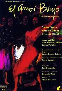 El amor brujo (Love, the Magician, or Wedded by Witchcraft) or Carlos Saura Dance Trilogy, Part 3: El Amor Brujo is a 1986 Spanish musical film written and directed by Carlos Saura. It was directed and choreographed in the flamenco style by Maria Pagès. It is the third part of the Saura's flamenco trilogy he made in the 1980s, after Bodas de sangre in 1981 and Carmen in 1983. The film was screened out of competition at the 1986 Cannes Film Festival.[1]