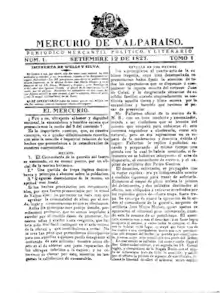 First number of El Mercurio de Valparaíso, dated 12 September 1827