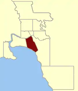 That part of the pre-1888 district immediately south of the Yarra became the Electoral district of Melbourne South.[4]