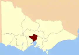 The district's area was defined as: "Bounded on the north by the great dividing range from the source of the River Plenty to the source of the Werribee River on the west by the Werribee River to Port Phillip Bay on the south by Port Phillip Bay to the mouth of the Yarra Yarra River and by that river to the confluence of the River Plenty and on the east by the River Plenty to its head in the great dividing range."[1]