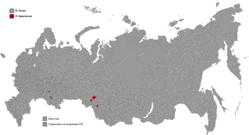 2004 election. Grey indicates a win by Putin, red a win by Kharitonov.