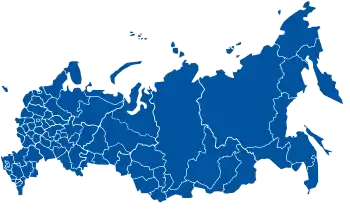 2000 election. Blue indicates a win by Putin, red a win by Zyuganov, grey a win by Tuleyev.
