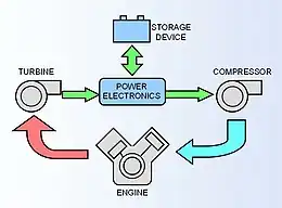 A turbocharger that can divert some of the exhaust gas to produce electricity (using the vehicle's alternator) is sometimes called a hybrid turbocharger.[12]