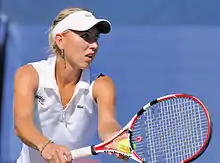 At her first event of the US Open Series, in the LA Championships, Vesnina fell to Zheng Jie in the second round, it was followed by first-round loses in the Rogers Cup to Anna Chakvetadze and in the Western & Southern Open to Zheng Jie. At the Pilot Pen Tennis, she upset two top-20 players – a fast-rising Samantha Stosur in the second round, and Amélie Mauresmo in the semifinals. She, however, lost to Caroline Wozniacki in her second WTA final and her first in a Premier-event.