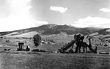 The town was somewhat revived when the Atchison, Topeka and Santa Fe Railroad passed nearby in the early 1890s, making mining feasible once again. The village was also part of the Colfax County War. A fire claimed a majority of the wooden town in 1903. The town population dwindled with the decline in the mines and by 1917, few called the Town home.
