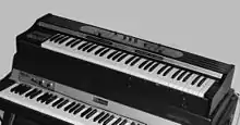 The Elka Rhapsody is a fully polyphonic multi-orchestral synthesizer with either a 49-key or 61-key keyboard, depending on the model. It was particularly popular with Berlin School electronic musicians during the 1970s.