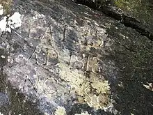 Ellicott Rock Wilderness is named for “Ellicott's Rock,” a rock on the east bank of the Chattooga Wild and Scenic River on which surveyor Major Andrew Ellicott chiseled a mark in 1811 to determine the border between Georgia and North Carolina. Major Ellicott, a well-respected, sought-after surveyor, astronomer, and mathematician, was hired by the state of Georgia to ground-truth the 35th parallel and settle a border dispute between Georgia and North Carolina. The task proved long and arduous, saw difficult terrain, and the location was not accessible by horse. On December 26 with severe weather and limited food, Major Ellicott calculated the 35th parallel and inscribed the letters "N-G" on a rock along the Chattooga Wild and Scenic River. This put the Georgia-North Carolina border approximately 18 miles south of what Georgia claimed at the time. Due to Georgia's unfavorable results, Major Ellicott went unpaid for over a year and was ultimately paid a tiny fraction of the salary promised. Two years later, a group of commissioners representing both North and South Carolina set out to verify the location of Ellicott's Rock. The commissioners carved a second rock (approximately 10 feet north of Ellicott's Rock) with the inscription "Lat 35 AD 1813 NC + SC" to mark where the North Carolina and South Carolina state lines joined. This second rock is commonly referred to as Ellicott's Rock though more accurately it is named Commissioner's Rock. Commissioner's Rock was listed in the National Register of Historic Places on July 24, 1973.[1]