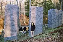 When the National Geographic Society selected David Childs of SOM to design their new headquarters in Washington, D.C., his office sought out artists who worked with stone.[20] This became Zimmerman's first substantial commission, Marabar (1984), reinforcing her desire to pursue this type of artwork and to learn more about all the aspects of creating outdoor public projects including: construction methods; landscape requirements; sustainable building practices and materials sources. It was after spending considerable time at stone quarries that she became interested in also making smaller more intimate stone sculptures.[21]
