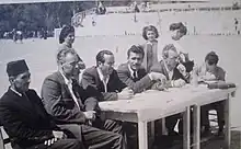 In the autumn of 1943 he joined the Communist Party of Macedonia and became a member of an informal group called the "Action national-liberation Committee" (ANOK) within the party, which agitated for the independence of a united Macedonia.[1][2][5] In April 1944 he became a member of the Initiative committee for the organization of the Antifascist Assembly of the National Liberation of Macedonia (ASNOM). In June, Čučkov, along with Metodija Andonov - Čento and Kiril Petrušev met with Josip Broz Tito on the island of Vis for consultations due to their activity.[1][2] He participated during the first session of ASNOM, and was elected as second vice presidents of the Presidium of ASNOM. On August 14, the Presidium of ASNOM elected him as a member of the commission for determining the offenses of the occupiers and their servants. Čučkov was also elected as a commissioner for agriculture of the National Committee for the Liberation of Yugoslavia. After the formation of the Provisional Government of the Democratic Federal Yugoslavia he became the minister for Macedonia. However, due to his agitation for an independent and united Macedonia, his stances were deemed nationalist, separatist and anti-Yugoslav, and he was removed from the post.[1][2][6]