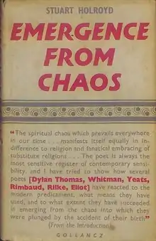 Emergence from Chaos is a 1957 book by the English writer Stuart Holroyd. In the first part of the book, Holroyd discusses different types of spirituality, while in the second part—roughly two thirds of the book—these distinctions are used to analyse the works of six different poets, each of whom reacted to the issues of modernity with his own spiritual vision. The book was Holroyd's debut and is associated with the phenomenon of the Angry Young Men.