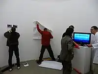 Part of the format includes debate; the artwork acts as a stimulant for debate on important themes.[24] The debate spreads awareness[25] and creates a sense of community in the format between participants.[15] Everyone, artists, and visitors are involved in the debate.[26] Debating facilitates the ability of the artworks to reach people and have an impact on current issues.[18] The debate is described as “running/ streaming”, about its ongoing nature.[27] Where the format has taken place in countries where censorship is state sponsored, Emergency Room can act as a way of opening up a dialogue, due to critique being more readily accepted through art.[27]