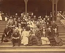 Melton writes that Hopkins' College and Seminary were "the seed organizations from which New Thought emerged."[49] Hopkins served as president of the seminary, which by 1893 had trained more than 350 students in the basic course, with over one hundred ordained to the ministry.[50] A course catalogue from that year lists Annie Rix Militz, George Edward Burnell, and Mary Lamereaux Burnell as professors.[51] Basic classes such as hermeneutics were taught by professors other than Hopkins, and the more advanced class such as Theology and Practical Ministry, were taught by Hopkins herself.[28] In 1890s, Hopkins began dispensing with the term "Christian Science", renaming her Christian Science magazine which she had founded a few years earlier the Universal Truth magazine, and renaming her student association the "Truth Students Association".[52] As Hopkins' student established their own organizations, they too would generally try to differentiate themselves from Christian Science, and just as Hopkins had made theological alterations to Eddy teachings, many of her students would make their own variations on Hopkins' original theology.[53]