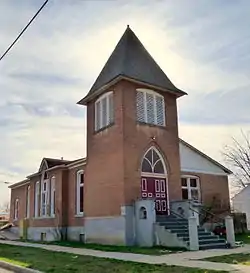 It was the first church building of the Emmett Presbyterian Church, which was founded in 1906. It is a red brick building on a concrete foundation. Its roof is hipped at the rear and is jerkin-headed over a clapboard gable on the front. It has an entry tower with a steep pyramidal cap at the left front.[2]