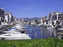Empuriabrava (Spanish: Ampuriabrava) is a community in the municipality of Castelló d'Empúries, in the Alt Empordà (Costa Brava, province of Girona, Catalonia, Spain). It is located in the Gulf of Roses, surrounded by the Natural Park of the Aiguamolls de l'Empordà, and is the largest residential marina in Europe, with some 24 km of navigable waterways.