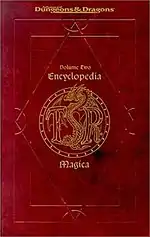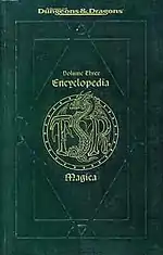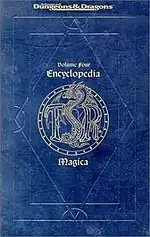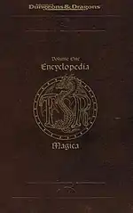 Encyclopedia Magica is a four-volume set intended to present every magic item ever published for Dungeons & Dragons up to that point, from Abacus of Calculation to Zwieback of Zymurgy.[1] The books in this series list every magical item published in all boxed sets and game supplements and every magazine article published for the AD&D game system from the previous 20 years.[2] The books total more than 1500 pages over the four volumes, and each is bound in a plastic jacket resembling leather.[1] Entries for the series were reproduced from sources including the Dungeon Master's Guide, the Dungeons & Dragons Basic Set and Dungeons & Dragons Expert Set, adventure modules and campaign settings, magazines such as Dragon.[1]