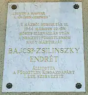 Endre Kálmán Bajcsy-Zsilinszky (June 6, 1886 – December 24, 1944), was an influential Hungarian national radical politician and an important voice in the struggle against German expansion and military policy. Executed National Resistant by the Hungarist Arrow Cross Party.