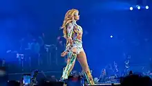 Beyoncé first performed "Energy" on the Renaissance World Tour (2023), with the opening night taking place in Stockholm, Sweden.[13] The song was performed during the "Motherboard" act of the tour, following "Cuff It". The "Wetter" remix of "Cuff It" served as a transition between the two songs, with it being sung over the instrumental of "Energy", which included elements of "End of Time" and "Love You Down". Beyoncé's dancers are seen walking down in poses, before strutting down the catwalk towards the secondary stage. Before the chorus, when Beyoncé sings the lyric "look around, everybody on mute", the music goes silent for a couple seconds, leading fans to make a challenge to see which tour date's audiences could stay "on mute" the longest. This would be referred as the "mute challenge".[14][15] At the end of the performance, the original interpolations of "Milkshake" are heard before the song seamlessly transitions into "Break My Soul" like it does on the album.