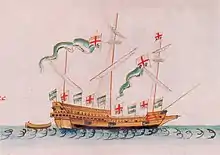 The Greyhound took part in a raid at Kirkwall on Orkney in 1557.[5] The landing party was repulsed and many troops were drowned attempting to return to the ships, including the commander John Clere.[6] The ship was rebuilt in 1558 and sent to Scotland in 1560 to support the siege of Leith.[7]