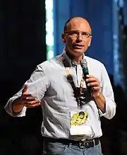 In 2007, together with other The Daisy's members, Letta joined the Democratic Party (PD), the new centre-left party, born from the union between The Daisy and the Democrats of the Left.[38][39] Having been a founding member of the party, Letta run in the first leadership election, which was held as an open primary. He announced his candidacy in July 2007 through a YouTube video.[40] After a few weeks from the announcement, he compared the PD to Wikipedia, stating: "As in Wikipedia, even in the PD each of the hundreds of thousands of members must bring their own contributions, their own skills, which in certain fields are certainly more important than mine and those of the other leaders of the centre-left."[41] In support of his candidacy, Letta founded the 360 Association, a centrist and Christian leftist group, mainly composed by former members of The Daisy.[42][43]