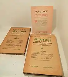 First editions (1924), 108 (1934) and 295–296 (1950) of the Journal, Atenea, founded by Enrique Molina, exhibited at the Gallery of History at Conceptión. - 1914 – Contemporary Education