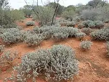 This eremophila occurs mostly commonly in Western Australia where it is found from near Rawlinna to Mount Magnet, growing in the Gibson Desert, Little Sandy Desert, Murchison, Nullarbor Plain and Yalgoo biogeographic regions.[6][7] It is also found in the extreme central west of South Australia. A single record from the Northern Territory may be a new, as yet undescribed species.[3]