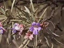 | Eremophila phyllopda subsp. obliqua leaves and flowers | |