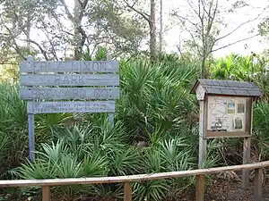 Erna Nixon Park is a public park located on 1200 Evans Road, Melbourne, Florida. It contains a 3,000-foot (910 m) elevated boardwalk through a natural Florida hammock.[1] The park contains ferns and old live oaks with hanging Spanish moss. It provides a natural habitat for several species of birds and small animals, such as the gopher tortoise and indigo snake.[1] The park also hosts frequent events, such as the semi-annual Moonlight Stroll that takes place in the evening and includes live music.[1] The park is named after Melbourne Village naturalist Erna Nixon (B: November 3, 1891).