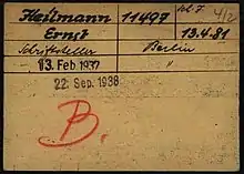 From February 1937, Heilmann was kept in Dachau concentration camp until he was transferred in September 1938 to Buchenwald concentration camp, where he was executed in April 1940.[2][3]