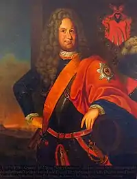 After the war, Tettau became colonel of the Danish Sjællandske geworbne Regiment in Schleswig until 1684.[4] Promoted brigadier and subsequently major-general he was in charge of fortress building in Norway. In 1689 he became Major-general of Foot in the Danish Auxiliary Corps in Ireland, distinguishing himself at the sieges of Cork, Kinsale, Athlone, and Limerick. Yet, following his Sovereign's wishes he entered into service with the Brandenburg auxiliary corps in Dutch service. Distinguishing himself in Flanders, he was wounded in action at the battle of Steenkerque 1692, and advanced to Brandenburg Lieutenant-general and Dutch Generalfeldzeugmeister. At the end of the war, he returned to East Prussia, where he had large estates, distinguishing himself in civilian service.[1][2][3]