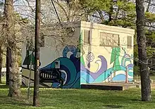 Portion of a mural by Ess McKee on the pump house in Alice Carter Place park in Indianapolis, Indiana.