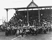 The stadium was inaugurated on May 7, 1916, in a Primera División match between San Lorenzo and Estudiantes de La Plata, won by San Lorenzo 2–1.[5] During the first years of the 1920s the club built a grandstand with roof. In August 1922, the stadium hosted the funeral of player Jacobo Urso, died on August 6 in the hospital. Urso had been injured in a match v Estudiantes de Buenos Aires, where he broke some ribs after a collision with a rival. 7,000 people attended Urso's funeral, with his coffin being carried by his teammates and players of Czech team Teplitzer FK, which was touring Argentina at the time of the funeral.[6]