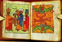 - ↑ Retrieved August 2016 http://www.getty.edu/art/collection/objects/242418/unknown-maker-gospel-book-ethiopian-about-1504-1505/