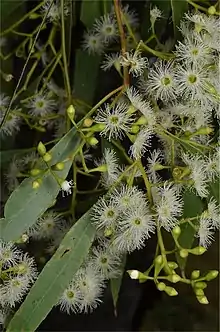Eucalyptus brownii, commonly known as the Brown's box or Reid River box,[3] is a species endemic to Queensland. It is a small to medium-sized tree with hard, tough, fissured bark, lance-shaped adult leaves, flower buds in groups of eleven to fifteen, white flowers and usually cup-shaped fruit.