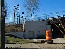 When originally opened, the entrance to the station along Euclid Avenue was in the middle of the railroad bridge over the street. The station was not very visible, and this may have contributed to its disuse. A further tunnel was constructed under the tracks to provide a more visible entrance at the east side of the bridge.