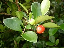 Eugenia reinwardtiana is a shrub to small tree in the family Myrtaceae. Native to tropical forests in northern Queensland, Indonesia,[2] and the Pacific Islands, its common names include Cedar Bay Cherry, Beach Cherry, Australian Beach, Mountain Stopper,[3][4] Nīoi (Hawaiian),[5] and A'abang (Chamorro). They are typically 2 to 6 m (6.6 to 19.7 ft) in height.[6]