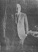 In 1905 Echave-Sustaeta was elected to the Pamplonese city council.[87] Thanks to numerous Carlist representation in the corporation he was voted teniente de alcalde, one of a few deputy mayors,[88] and served in Comisión de Fomento.[89] He proved a rather restless and combative member; in 1906 he protested a motion to commemorate liberal politicians Castelar, Pi y Margall and Sagasta, refused to budge, was fined, paid at the spot, left the room and took other Carlists councilors with him, breaking up the entire session.[90] As member of the council in 1906 he took part in public rallies against governmental anti-clerical regulations, especially the so-called Ley del candado.[91] It is not clear when his term expired.