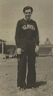 Evžen Rošický (15 October 1914 Olomouc – 25 June 1942 Prague) was a Czech athlete and journalist.[1] Prague's Stadion Evžena Rošického is named after him. During World War II, he and his father Jaroslav Rošický were part of the anti-Nazi resistance group Captain Nemo. Evžen Rošický and his father were arrested on 18 June 1942, and one week later, on 25 June 1942, they were both executed at the Kobylisy shooting range in Prague.[2]