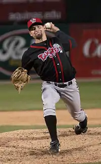 Crawford pitching for the Lansing Lugnuts, Single-A affiliates of the Blue Jays, in 2010.