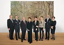 Following a reshuffle of portfolios after the by-election of two new Federal Councillors in 2010, Widmer-Schlumpf replaced outgoing Hans-Rudolf Merz as the head of the Federal Department of Finance.[6] Widmer-Schlumpf was elected Vice President of the Confederation for 2011, alongside President Micheline Calmy-Rey. On 14 December 2011 she was elected President of the Confederation for 2012—the fourth woman to hold the post after Ruth Dreifuss in 1999, Calmy-Rey in 2007 and 2011, and Doris Leuthard in 2010, as well as the third woman in a row. Due to a large amount of turnover on the Federal Council, she was the longest-serving member to have not yet served as its president. After the Swiss People's Party won a record vote of over 29% in the 2015 general election, Widmer-Schlumpf announced she would not run for reelection to the Federal Council on 28 October 2015.[7][8][9] She was succeeded by Guy Parmelin.