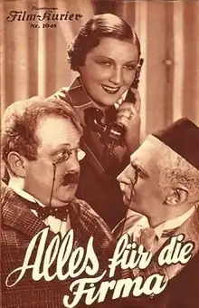 Everything for the Company (German: Alles für die Firma) is a 1935 Austrian comedy film directed by Rudolf Meinert and starring Oskar Karlweis, Felix Bressart and Otto Wallburg.[1] Many of those involved in the film's production had recently fled from Nazi Germany. It was shot at the Schönbrunn Studios in Vienna. The film's sets were designed by the art director Artur Berger. A separate Dutch version De Vier Mullers was also produced, directed by Meinert and starring Johannes Heesters.