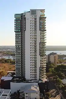 Evolution on Gardiner is a high-rise residential building and the tallest structure in Darwin, Northern Territory. It is located on the eastern part of the Darwin CBD on Knuckey Street. The roof of the tower is 100 metres above ground, reaching Darwin's maximum height limit of 120 meters above sea level.[1][2] The project was designed by architectural firm Burling Brown Architects and was built by Darwin-based Sunbuild.