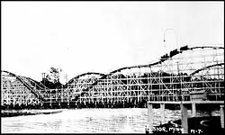 Inspired by Coney Island, the park's main attractions included a wooden roller coaster called the Cyclone,[2] a Ferris wheel, bumper cars, boat rides, a fun house, and a carousel. The fun house had a gunny sack slide, a spinning disc that hurled people into a padded sidewall and a turning barrel that was nearly impossible to walk through. The carousel,[3] built by the Philadelphia Toboggan Company, was in service for the entire duration of the park and is still in use at Valleyfair Amusement Park in Shakopee.[4] A second ride, the Scrambler,[5] was also saved from destruction.[6] Contrary to widespread belief, the Cyclone roller coaster was not relocated to Valleyfair and renamed High Roller. The Cyclone was scrapped, and High Roller was designed especially for the new park.[4]