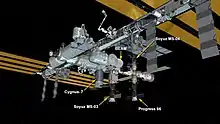 Soyuz MS-03 launched on November 17, 2016, transporting Oleg Novitskiy, Peggy Whitson and Thomas Pesquet.[5] MS-03 docked with the Rassvet module on November 19, 2016.