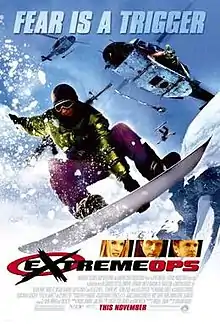 Extreme Ops is a 2002 action thriller film directed by Christian Duguay. The film was written by Michael Zaidan, Timothy Scott Bogart, and Mark Mullin and stars Devon Sawa, Bridgette Wilson-Sampras, Rupert Graves, and Rufus Sewell. The film's plot revolves around a commercial director and three extreme sports enthusiasts who embark on their trip to the Alps for seasonal practice and stunt filming. Unbeknownst to them, they unknowingly film at the same location that serves as a hideout for Serbia's most wanted war criminal, Slobodan Pavlov. When Pavlov and his henchmen discover that the enthusiasts have been inadvertently spying on them, they quickly move to eliminate the witnesses. With helicopters and skilled assassins hot on their trail, the enthusiasts must employ their fast-paced extreme sports abilities to escape the treacherous mountain and save their lives.