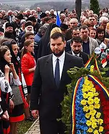 On 1 April 2016, the 75th anniversary of the massacre, a ceremony was held in Fântâna Albă, with the participation of the Governor of Chernivtsi Oblast, the abbot of Putna Monastery, and several Romanian officials, including Dan Stoenescu and Viorel Badea.[4][26] In an interview, Stoenescu stated that "this tragedy of the Romanian people was followed by other retaliations as the one in 1941 when other thousands of Romanians of Bukovina, many of them being the relatives of the victims of Fântâna Albă massacre, were taken away from their houses and deported to Siberia and Kazakhstan."[4][27]