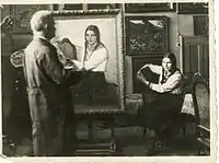 Félix Bódog Widder paints his daughter, Magda Widder at his studio